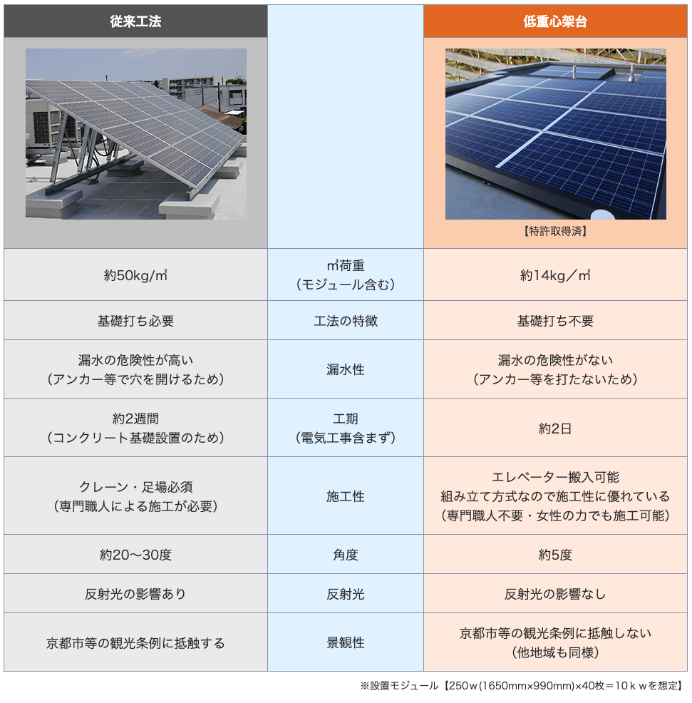 従来工法と低重心架台®の比較